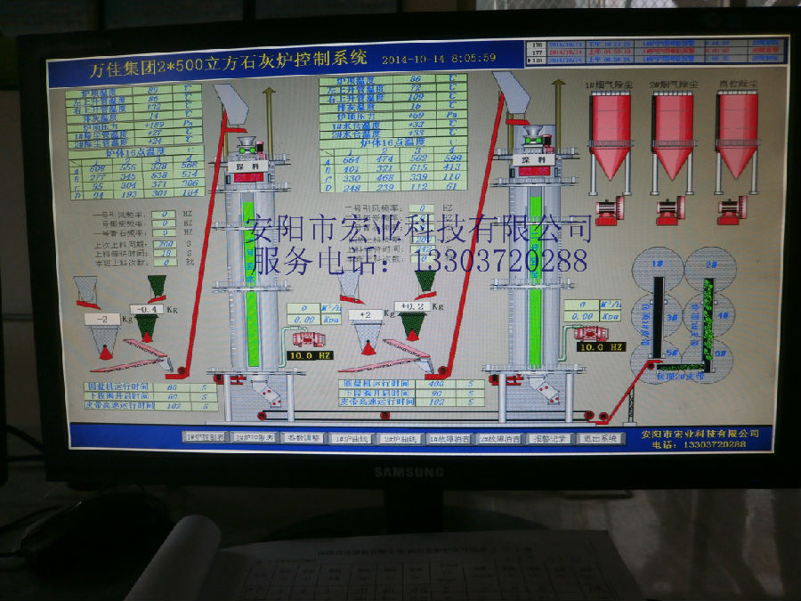 通過(guò)程序控制石灰窯設(shè)備(混配系統(tǒng)、卷?yè)P(yáng)機(jī)、旋轉(zhuǎn)布料器、兩段密封閥、出灰機(jī)等設(shè)備)完成原燃料自動(dòng)稱量與均勻混配、豎爐煅燒、成品自動(dòng)出灰等生產(chǎn)過(guò)程的全自動(dòng)控制,故障自動(dòng)檢測(cè)并實(shí)現(xiàn)中文語(yǔ)音報(bào)警。